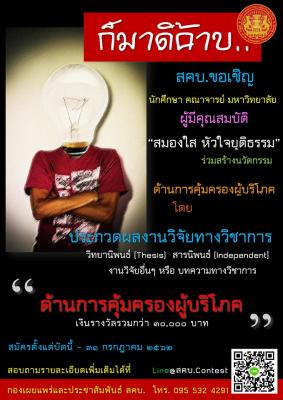 สคบ.จัดประกวดผลงานทางวิจัยทางวิชาการด้านการคุ้มครองผู้บริโภค ชิงเงินรางวัลร ...( webadmin )