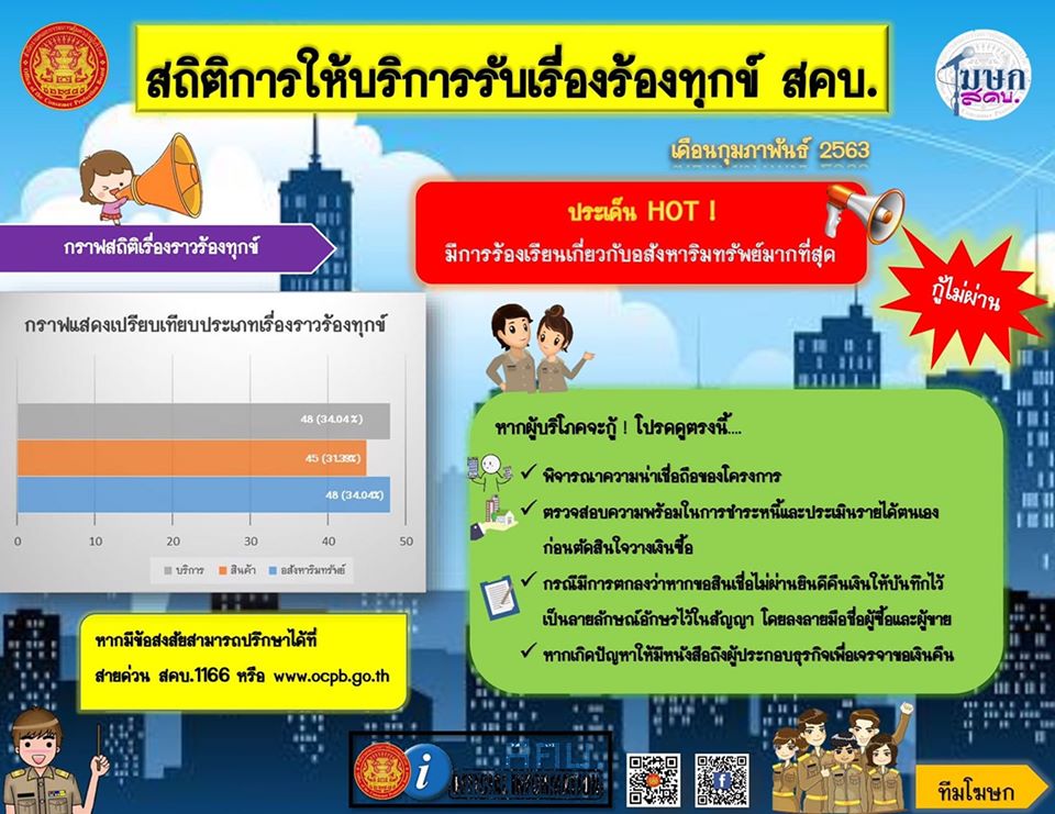 สถิติการให้บริการรับเรื่องร้องทุกข์ สคบ. เดือนกุมภาพันธ์ 2563( webadmin )