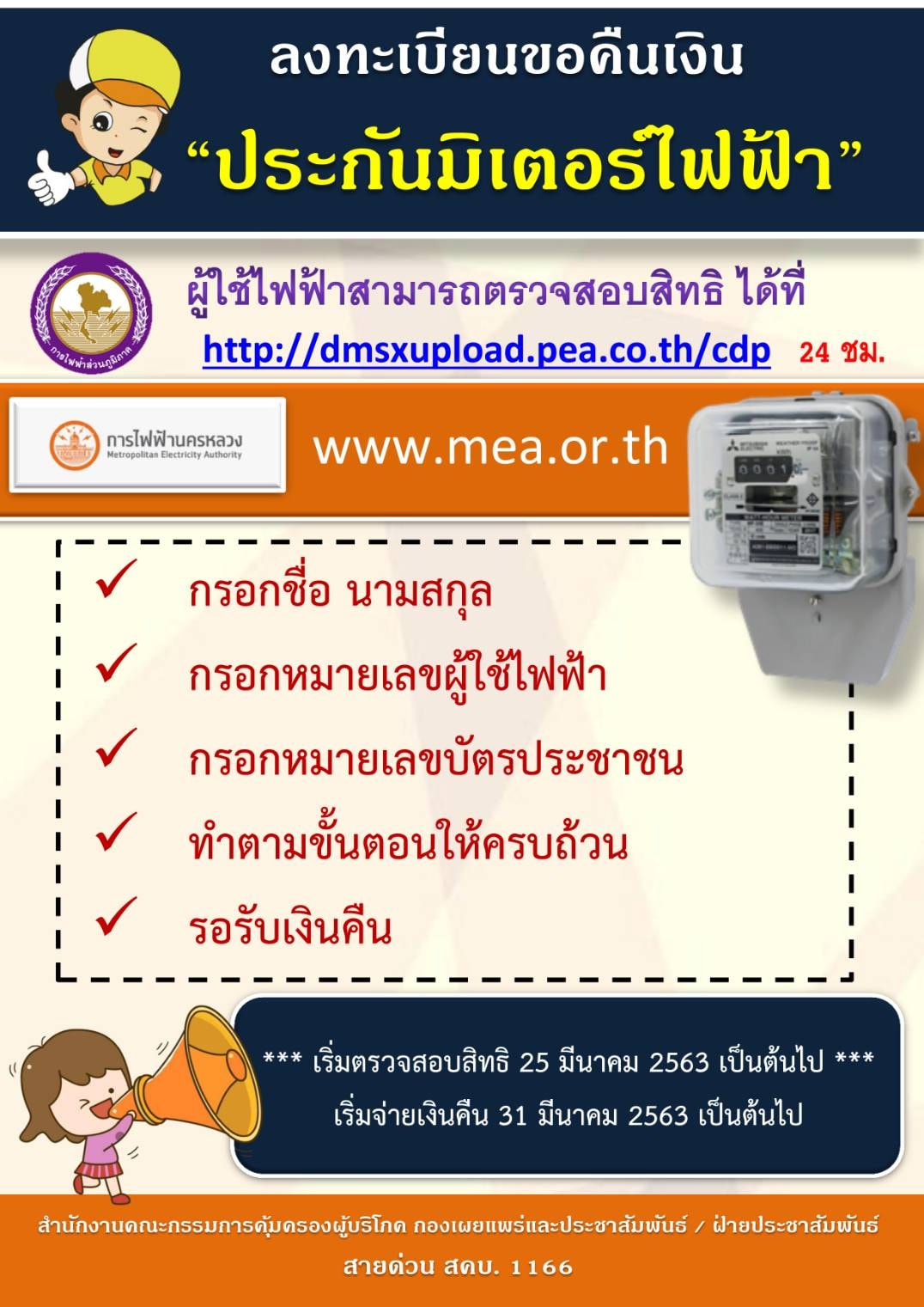 ลงทะเบียนขอคืนเงิน "ประกันมิเตอร์ไฟฟ้า"( webadmin )