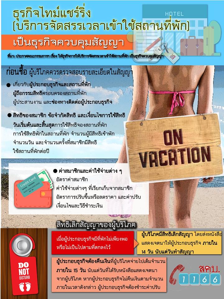 ธุรกิจไทม์แชร์ริ่ง (บริการจัดสรรเวลาเข้าใช้สถานที่พัก) เป็นธุรกิจควบคุมสัญญา