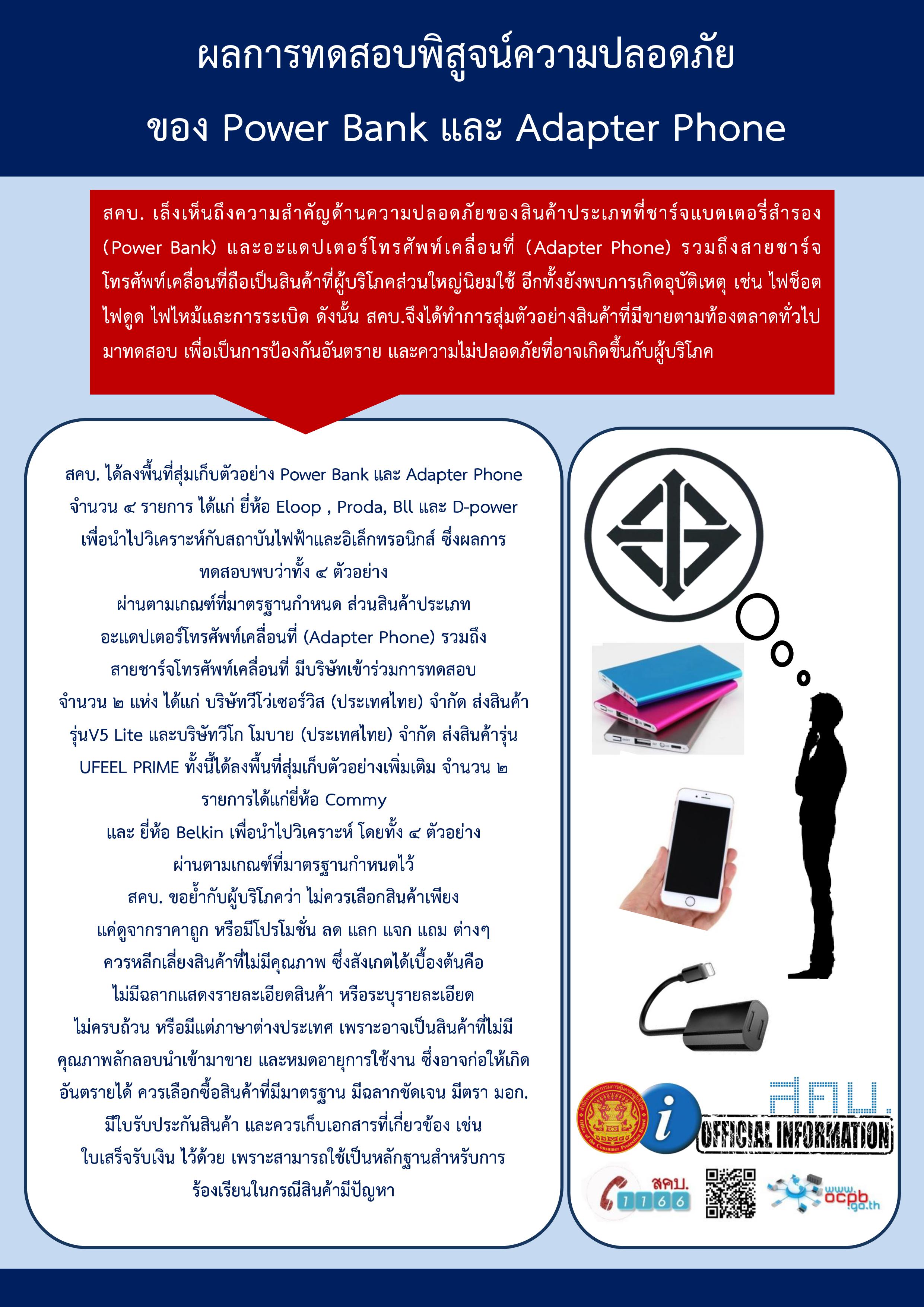 ผลการทดสอบพิสูจน์ความปลอดภัย ของ Power Bank และ Adapter Phone