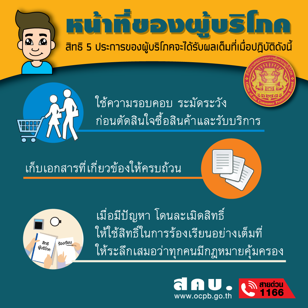 หน้าที่ของผู้บริโภค สิทธิ 5 ประการของผู้บริโภคจะได้รับผลเต็มที่เมื่อปฏิบัติดังนี้