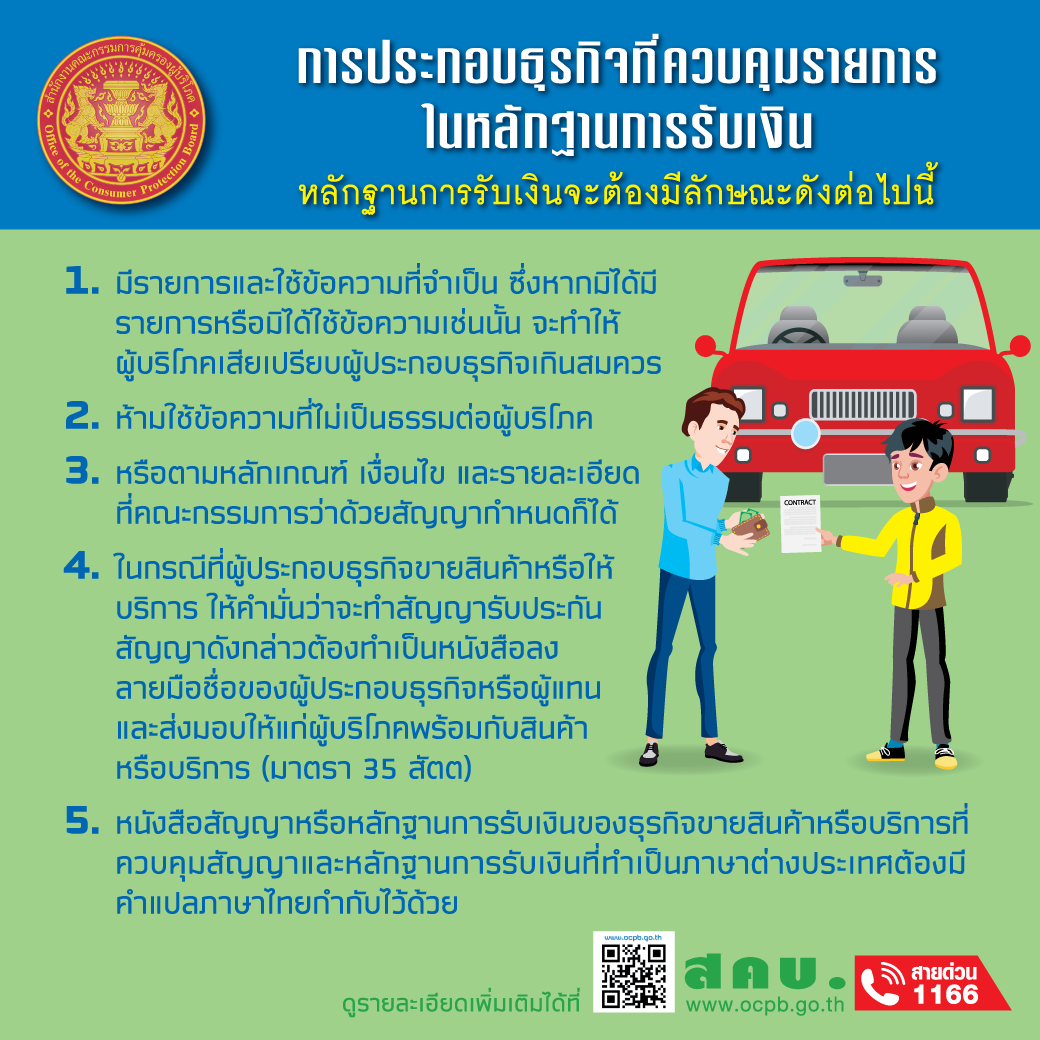 การประกอบธุรกิจที่ควบคุมรายการในหลักฐานการรับเงิน