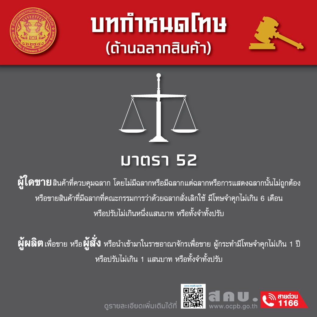 บทกำหนดโทษ (ด้านฉลากสินค้า) มาตรา 52