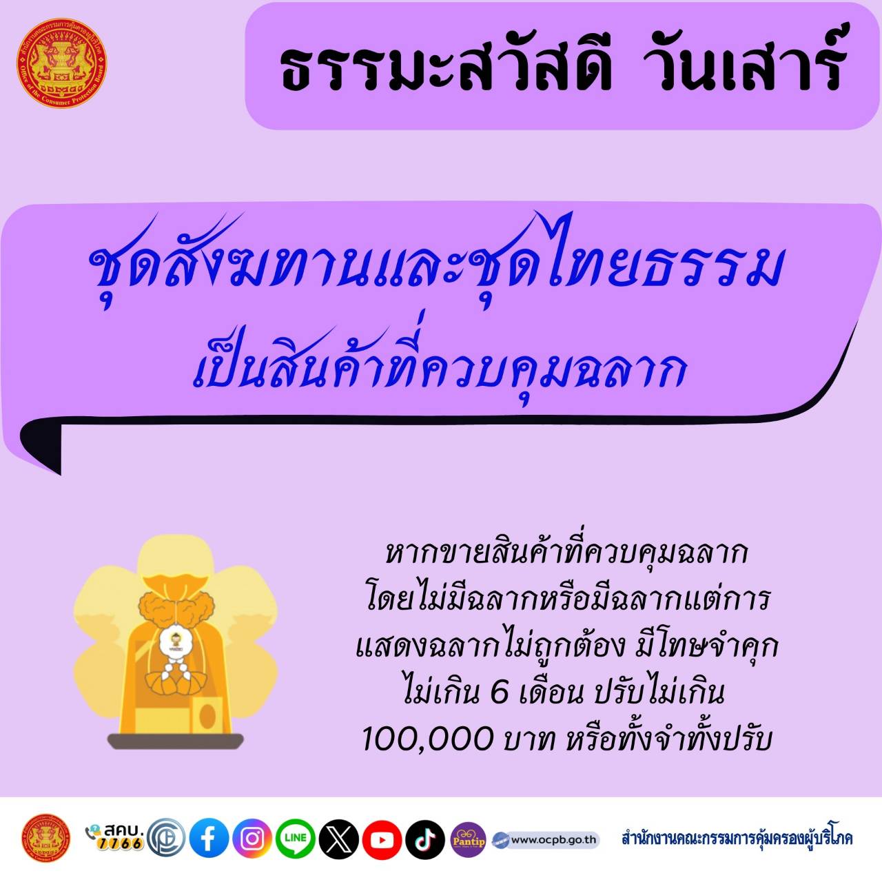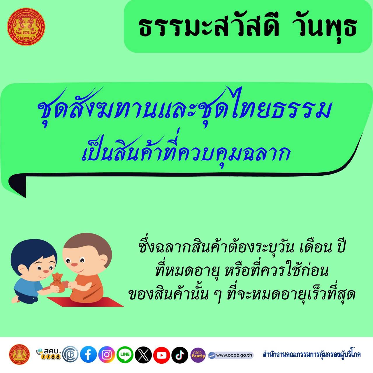 ชุดสังฆทานและชุดไทยธรรม เป็นสินค้าที่ควบคุมฉลาก