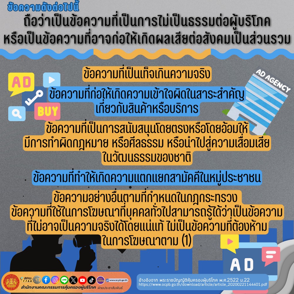ข้อความดังต่อไปนี้ ถือว่าเป็นข้อความที่เป็นการไม่เป็นธรรมต่อผู้บริโภค