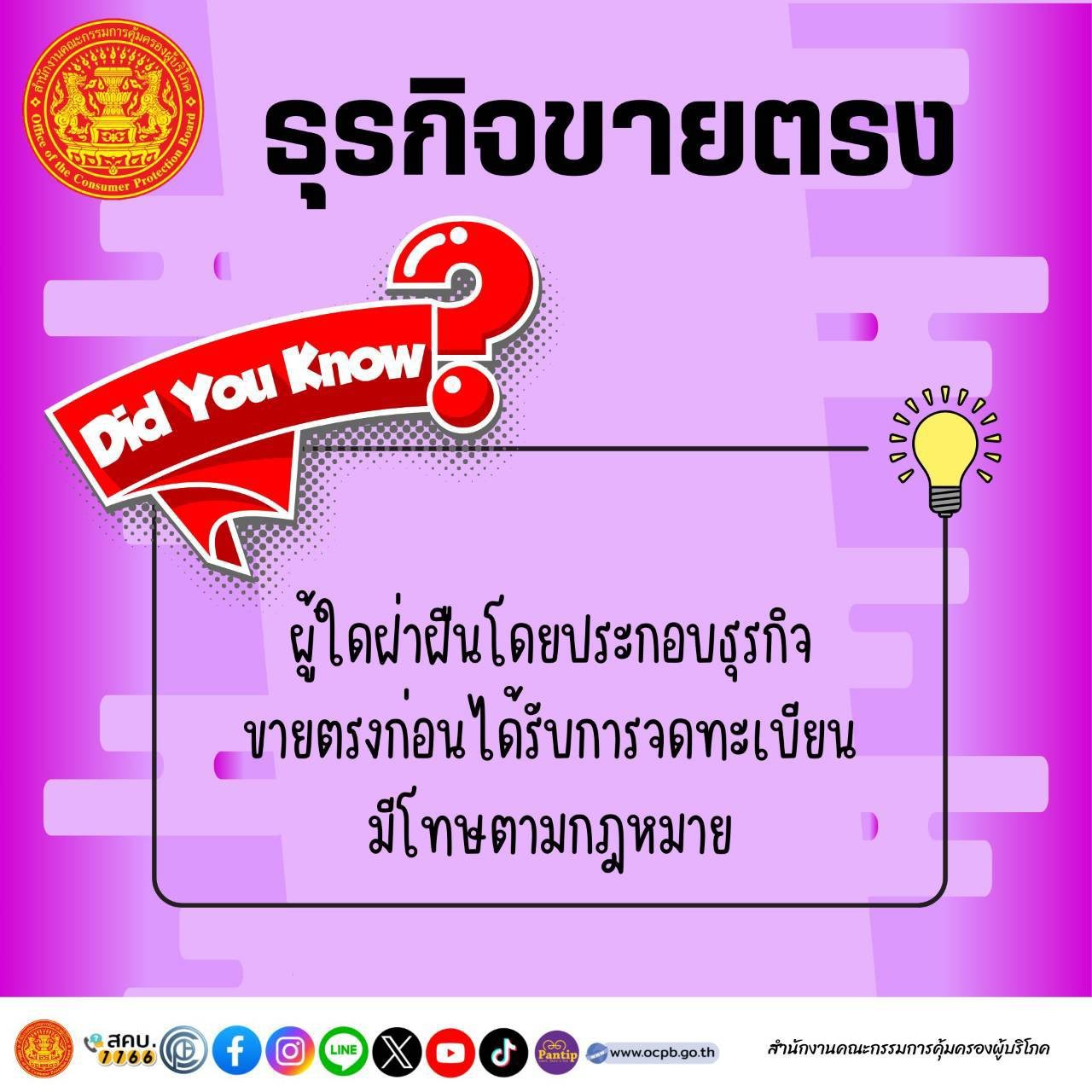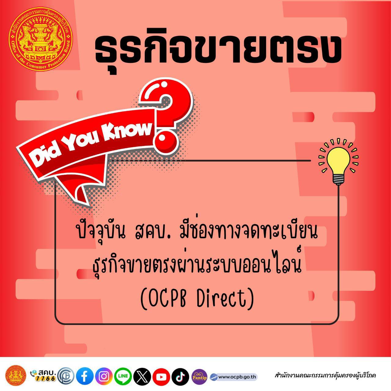 สคบ. มีช่องทางจดทะเบียนธุรกิจขายตรงผ่านระบบออนไลน์ (OCPB Direct)