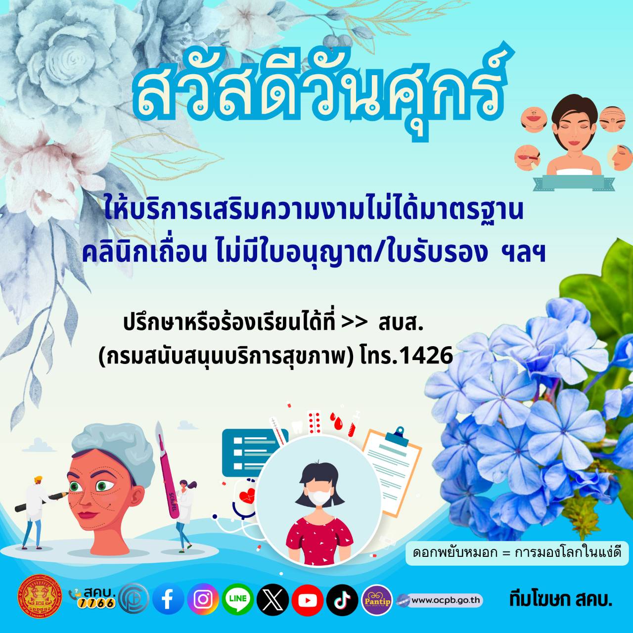 ให้บริการเสริมความงามไม่ได้มาตรฐาน คลินิกเถื่อน ไม่มีใบอนุญาต/ใบรับรอง ฯลฯ ปรึกษาหรือร้องเรียนได้ที่ สบส.