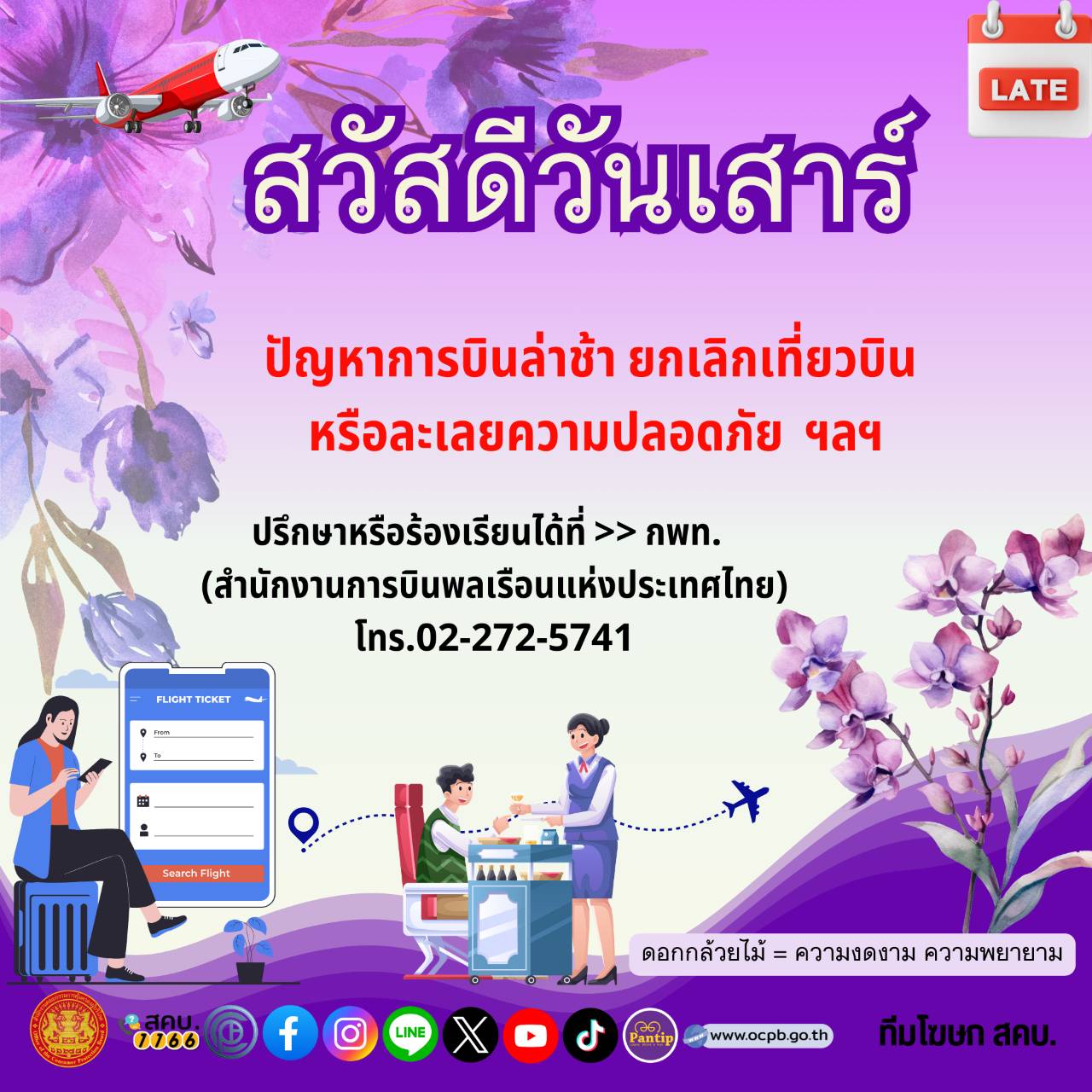 ปัญหาการบินล่าช้า ยกเลิกเที่ยวบินหรือละเลยความปลอดภัย ฯลฯ ปรึกษาหรือร้องเรียนได้ที่ กพท.