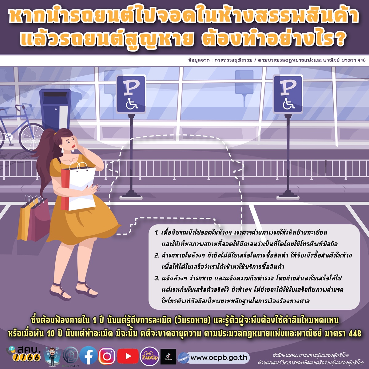 หากนำรถยนต์ไปจอดในห้างฯ แล้วสูญหายจะต้องทำอย่างไร