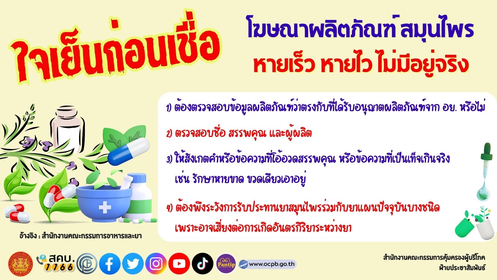 ใจเย็นก่อนเชื่อ โฆษณาผลิตภัณฑ์ สมุนไพร หายเร็ว หายไว ไม่มีอยู่จริง