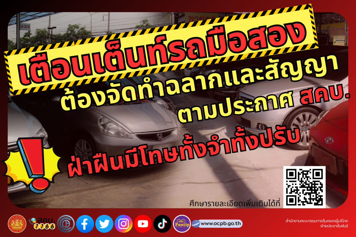 เตือนเต็นท์รถมือสองต้องจัดทำฉลากและสัญญาตามประกาศ สคบ.