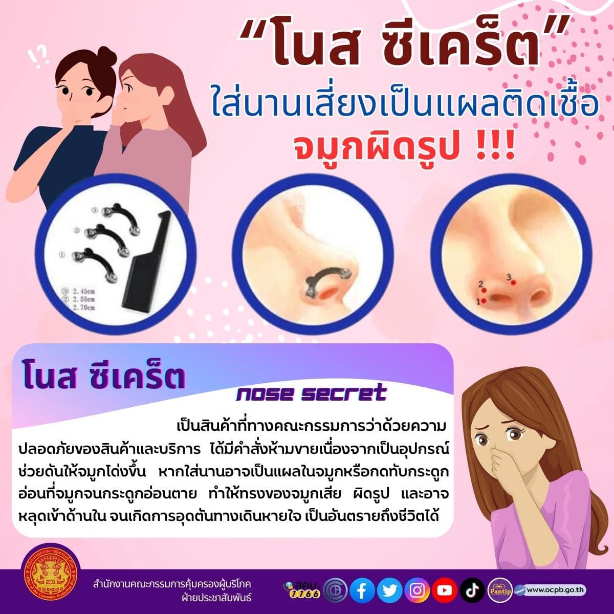 "โนส ซีเคร็ต" ใส่นานเสี่ยงเป็นแผลติดเชื้อ จมูกผิดรูป !!!