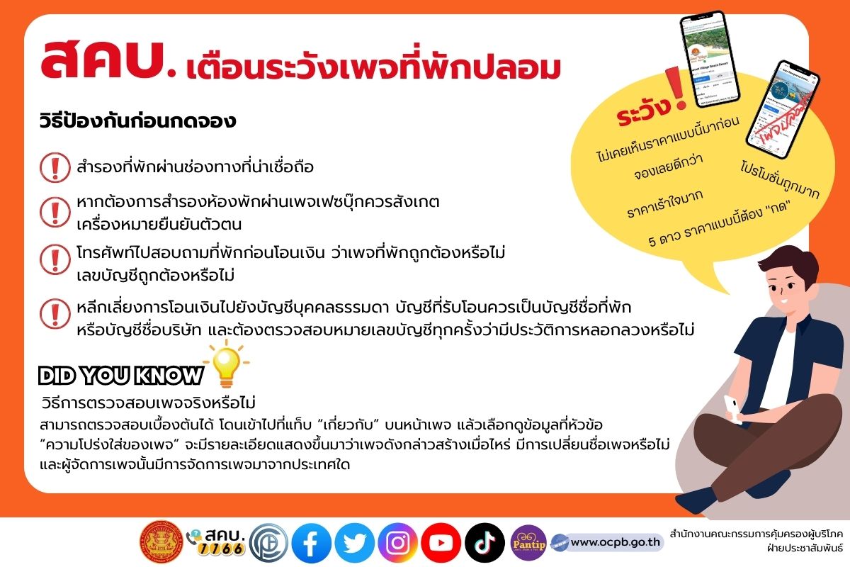สคบ. เตือนระวังเพจที่พักปลอม