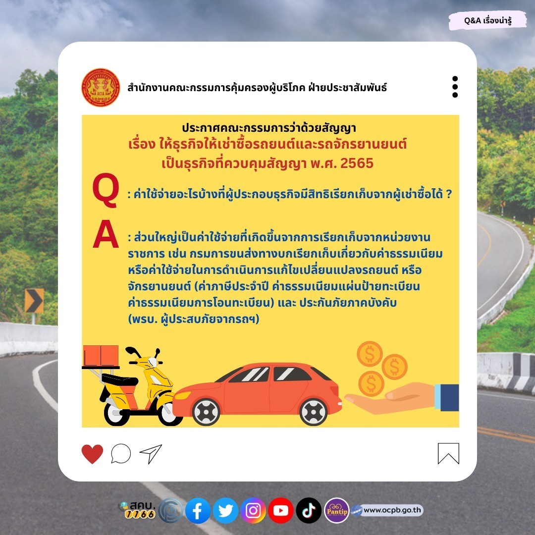 ประกาศคณะกรรมการว่าด้วยสัญญา เรื่อง ให้ธุรกิจให้เช่าซื้อรถยนต์และรถจักรยานยนต์ เป็นธุรกิจที่ควบคุมสัญญา พ.ศ. 2565