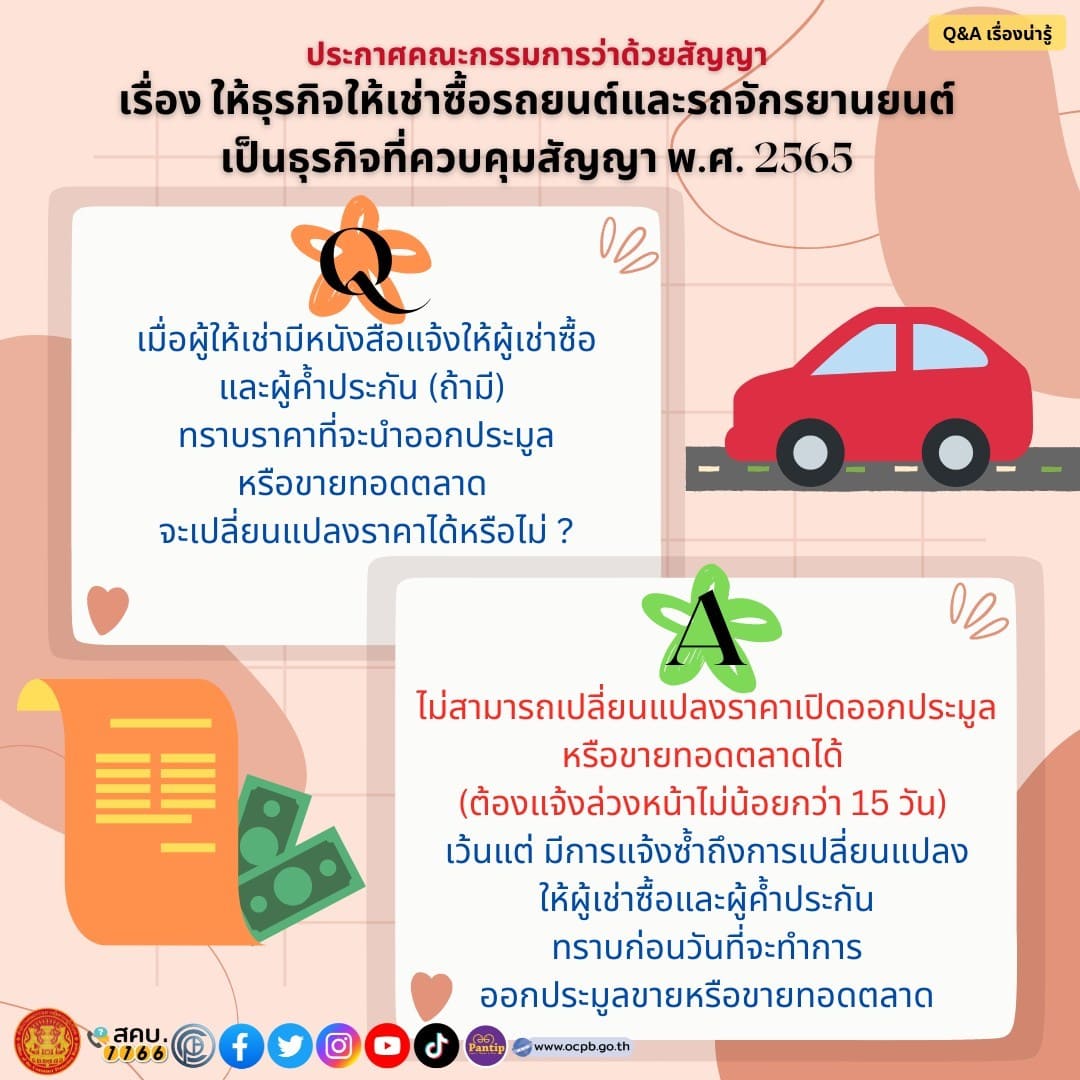 ประกาศคณะกรรมการว่าด้วยสัญญา เรื่อง ให้ธุรกิจให้เช่าซื้อรถยนต์และรถจักรยานยนต์เป็นธุรกิจที่ควบคุมสัญญา พ.ศ. 2565
