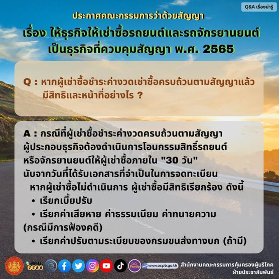 ดีเดย์ 10 มกราคม 2566 สคบ. ประกาศคุมสัญญาเช่าซื้อรถ มีผลบังคับใช้แล้ว !!