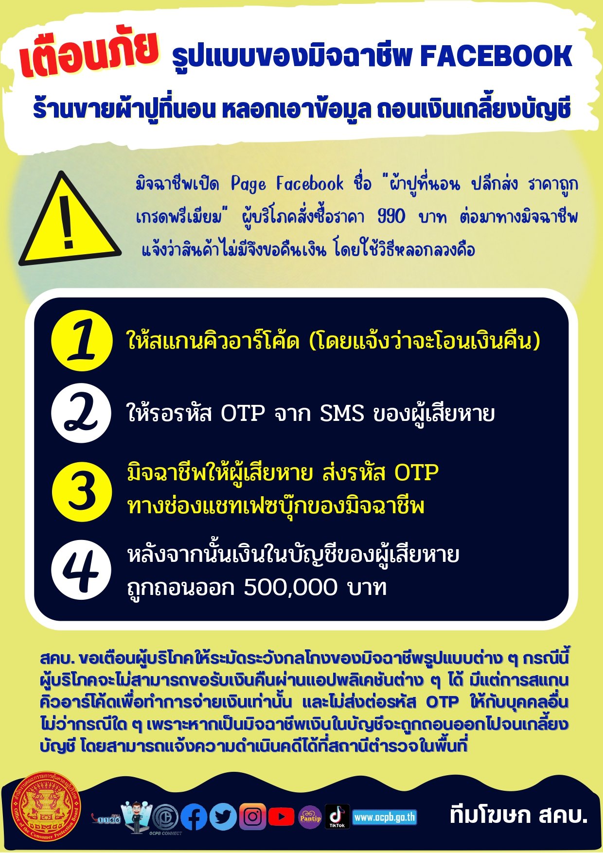เตือนภัย รูปแบบของมิจฉาชีพ FACEBOOK ร้านขายผ้าปูที่นอน หลอกเอาข้อมูล ถอนเงินเกลี้ยงบัญชี