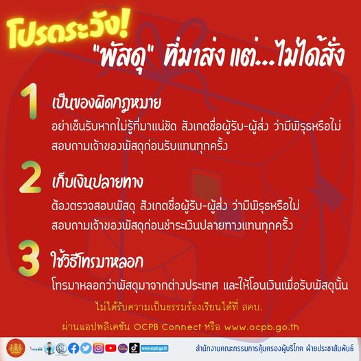 โปรดระวัง! "พัสดุ" ที่มาส่ง แต่...ไม่ได้สั่ง