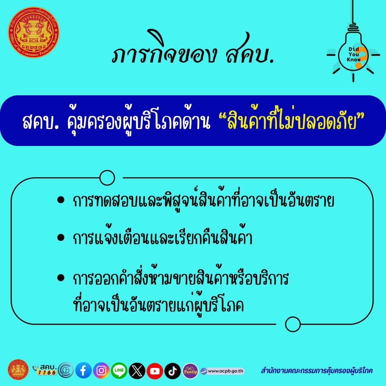 ภารกิจของ สคบ. คุ้มครองผู้บริโภคด้าน "สินค้าที่ไม่ปลอดภัย"