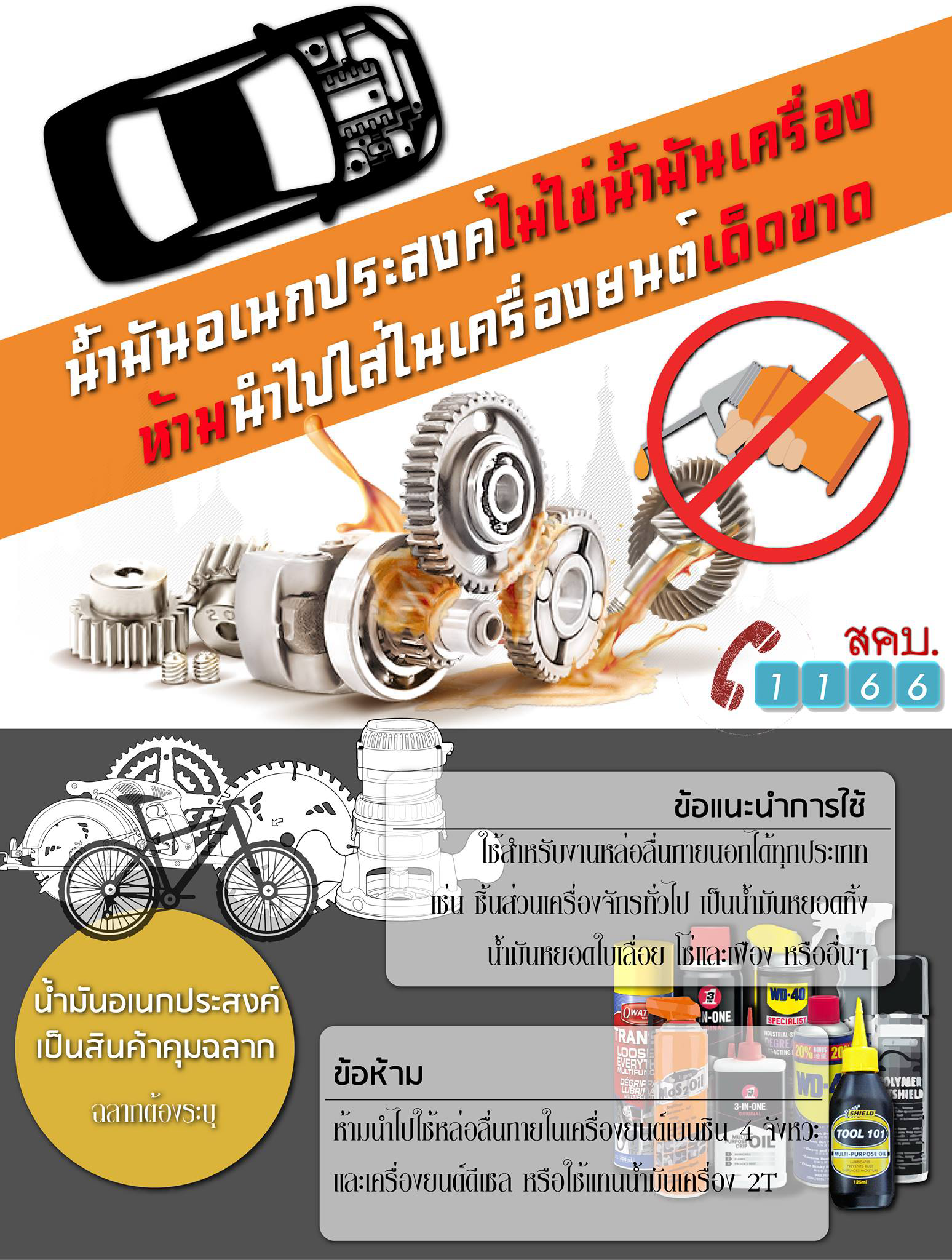 น้ำมันอเนกประสงค์ไม่ใช่น้ำมันเครื่อง ห้ามนำไปใส่ในเครื่องยนต์เด็ดขาด