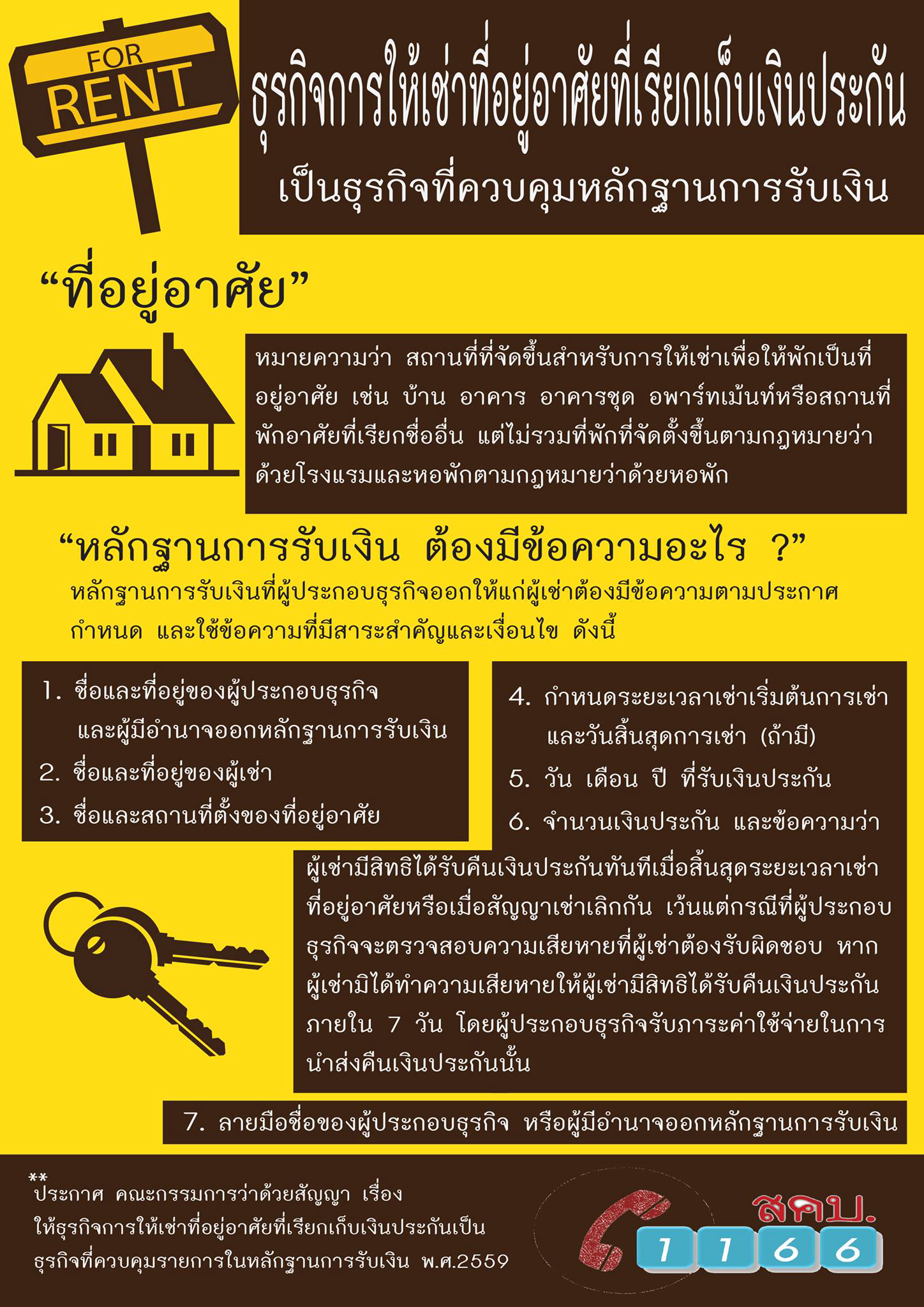 ธุรกิจการให้เช่าที่อยู่อาศัยที่เรียกเก็บเงินประกัน เป็นธุรกิจที่ควบคุมหลักฐ ...