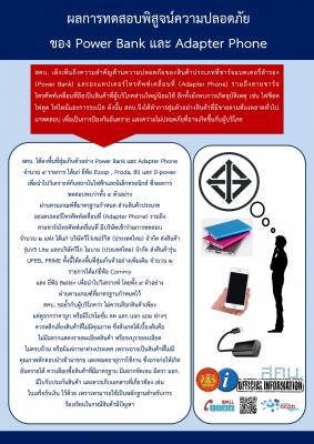 ผลการทดสอบพิสูจน์ความปลอดภัยของ Power Bank และ Adapter Phone