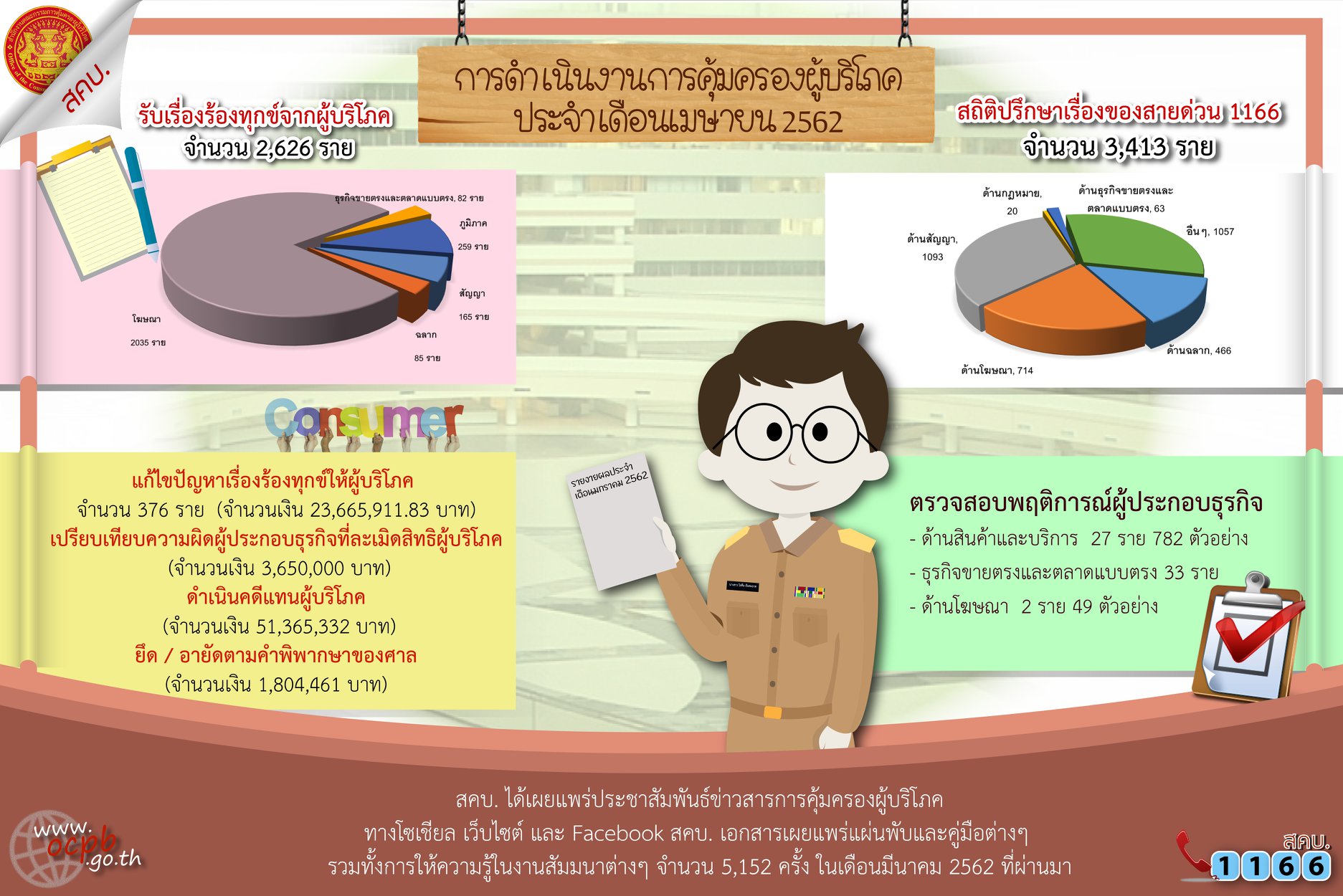 ผลการดำเนินงานการคุ้มครองผู้บริโภคประจำเดือนเมษายน #สคบ #งานคุ้มครองผู้บริ ...( webadmin )