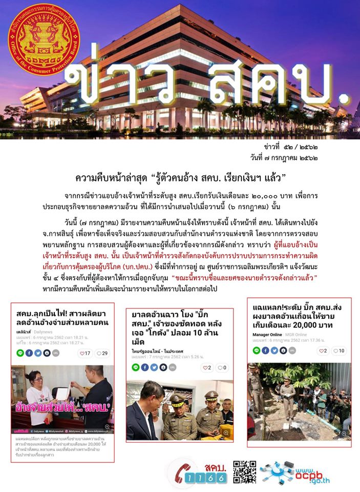 ความคืบหน้าล่าสุด “รู้ตัวคนอ้าง สคบ. เรียกเงินฯ แล้ว”( webadmin )