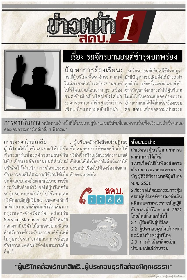"ข่าวหน้าหนึ่ง" สคบ. เรื่อง จักรยานยนต์ชำรุดบกพร่อง( webadmin )