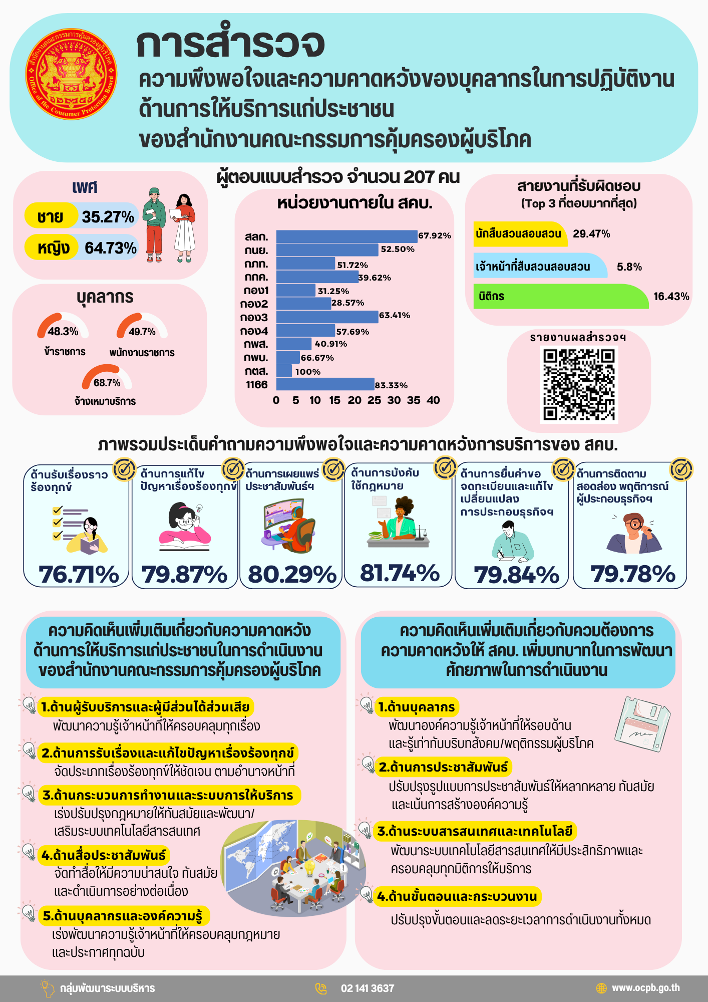 (Infographic) การสำรวจความพึงพอใจและความคาดหวังของบุคลากรในการปฏิบัติงานด้านการให้การบริการแก่ประชาชน ของสำนักงานคณะกรรมการคุ้มครองผู้บริโภค (สคบ.)