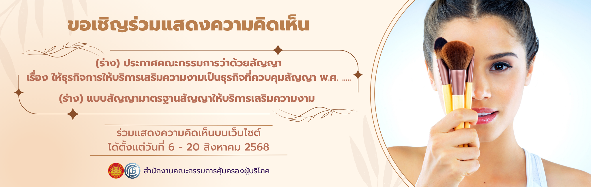 แบบรับฟังความคิดเห็น (ร่าง) ประกาศคณะกรรมการว่าด้วยสัญญา เรื่อง ให้ธุรกิจการให้บริการเสริมความงามเป็นธุรกิจที่ควบคุมสัญญา พ.ศ. .....