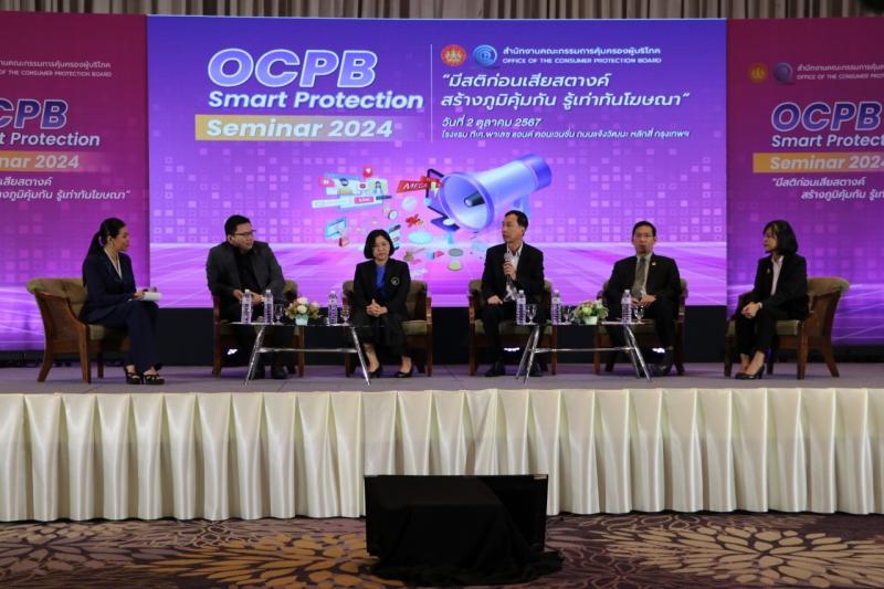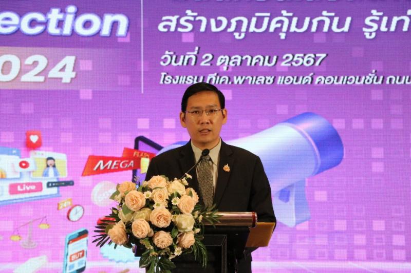 วันที่  2 ตุลาคม 2567 เวลา 09.00 น. เลขาธิการคณะกรรมการคุ้มครองผู้บริโภค มอบหมายให้ ดร.ศรัณย์ รักษ์เผ่า ผู้อำนวยการสำนักแผนและการพัฒนาการคุ้มครองผู้บริโภค เป็นประธานเปิดงานสัมมนากฎหมายคุ้มครองผู้บริโภคด้านการโฆษณาในยุคดิจิทัล หัวข้อ "มีสติก่อนเสียสตางค์ สร้างภูมิคุ้มกัน รู้เท่าทันโฆษณา” โดยมี ดร.ธชะนัน วงศ์ปัน ผู้อำนวยการส่วนประสานงานภาครัฐและเอกชน เป็นผู้กล่าวรายงาน ณ โรงแรม ทีเค. พาเลซ แอนด์คอนเวนชั่น กรุงเทพฯ