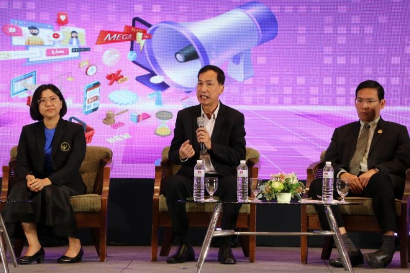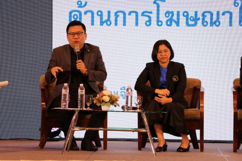 - ช่วงเช้าเป็นการเสวนา หัวข้อ กฎหมายคุ้มครองผู้บริโภคด้านการโฆษณาในยุคดิจิทัล โดยวิทยากร ดังนี้