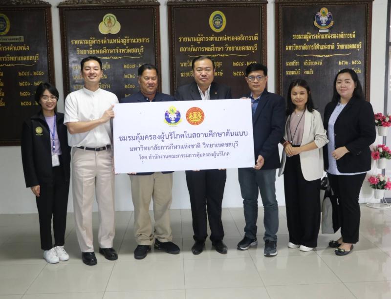 วันพฤหัสบดีที่ 27 พฤศจิกายน 2567 สำนักงานคณะกรรมการคุ้มครองผู้บริโภค และมหาวิทยาลัยการกีฬาแห่งชาติ ประจำวิทยาเขตชลบุรี จังหวัดชลบุรี ได้ร่วมกิจกรรมการจัดตั้งชมรมคุ้มครองผู้บริโภคในสถานศึกษาต้นแบบ ภายใต้โครงการ Smart Consumer ซึ่งมีการประชุมหารือแนวทางการจัดการให้ความรู้ด้านการคุ้มครองผู้บริโภคให้กับนักศึกษาในการจัดตั้งชมรมฯ โดยสำนักแผนและการพัฒนาการคุ้มครองผู้บริโภค ได้มอบหมาย นายนิรุตต์ ศรีไกรวิน ผู้อำนวยการส่วนวิชาการ ติดตามและประเมินผล และคณะเข้าร่วมการประชุมดังกล่าว รวมถึง สคบ. ได้นำป้ายชมรมคุ้มครองผู้บริโภคในสถานศึกษาต้นแบบ มอบให้กับทางสถาบันฯ อีกด้วย สำหรับวัตถุประสงค์ในครั้งนี้ เพื่อให้นักศึกษาได้เกิดการรวมกลุ่มเพื่อจัดทำกิจกรรมด้านการคุ้มครองผู้บริโภค นำไปสู่การถ่ายทอดความรู้ด้านการคุ้มครองผู้บริโภคไปยังบุคคลใกล้ชิด ตลอดจนชุมชนที่อยู่อาศัย และสามารถเป็นสถานศึกษาต้นแบบด้านการคุ้มครองผู้บริโภคในพื้นที่ต่อไปได้