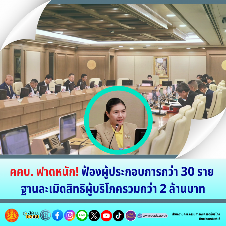 "คคบ. ฟาดหนัก! ฟ้องผู้ประกอบการกว่า 30 ราย ฐานละเมิดสิทธิผู้บริโภค คดีความเสียหายรวมกว่า 2 ล้าน"