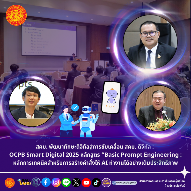 สคบ. พัฒนาทักษะดิจิทัลสู่การขับเคลื่อน สคบ. ดิจิทัล : OCPB Smart Digital 2025 หลักสูตร “Basic Prompt Engineering : หลักการเทคนิคสำหรับการสร้างคำสั่งให้ AI ทำงานได้อย่างเต็มประสิทธิภาพ