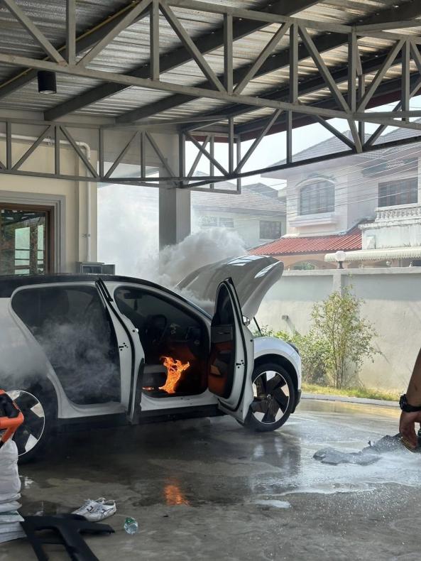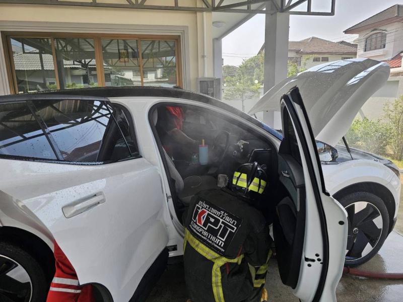 ได้เข้าระงับเหตุอย่างเร่งด่วน พบเพลิงกำลังลุกไหม้รถยนต์ไฟฟ้าคันดังกล่าว ก่อนสามารถควบคุมเพลิงไว้ได้ในเวลา 15.57 น. ทั้งนี้ สาเหตุของการเกิดเหตุยังอยู่ระหว่างการตรวจสอบของหน่วยงานที่เกี่ยวข้อง