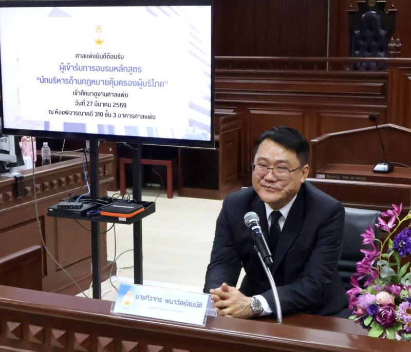 วันศุกร์ที่ 27 มีนาคม 2569 เวลา 13.00 น. สำนักงานคณะกรรมการคุ้มครองผู้บริโภค ได้จัดกิจกรรมศึกษาดูงาน ณ ศาลแพ่ง ถนนรัชดาภิเษก กรุงเทพมหานคร สำหรับผู้เข้ารับการอบรมหลักสูตรนักบริหารด้านกฎหมายเพื่อคุ้มครองผู้บริโภค โดยมี นายทิวากร พนาวัลย์สมบัติ รองอธิบดีผู้พิพากษาศาลแพ่ง ให้เกียรติให้การต้อนรับ