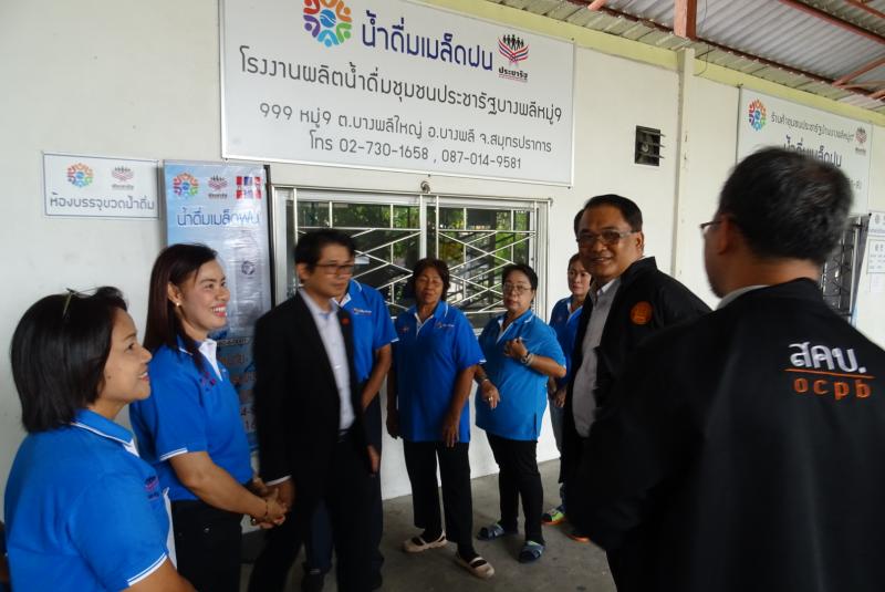 วันที่ 4 เมษายน 2561 เวลา 14.30 น. นายพิฆเนศ ต๊ะปวง รองเลขาธิการคณะกรรมการคุ้มครองผู้บริโภค ลงพื้นที่สำรวจและตรวจเยี่ยม "โรงงานผลิตน้ำดื่มเมล็ดฝน” ณ ชุมชนประชารัฐบางพลี หมู่ 9 อำเภอบางพลี จังหวัดสมุทรปราการ ตามนโยบาย นายสุวพันธุ์ ตันยุวรรธนะ รัฐมนตรีประจำสำนักนายกรัฐมนตรี ภายใต้โครงการมอบตราสัญลักษณ์คุ้มครองผู้บริโภค เพื่อเป็นการยกระดับผลิตภัณฑ์ชุมชนให้มีการจำหน่ายสินค้าที่เป็นธรรม ปลอดภัย มีธรรมาภิบาลและความรับผิดชอบต่อผู้บริโภค