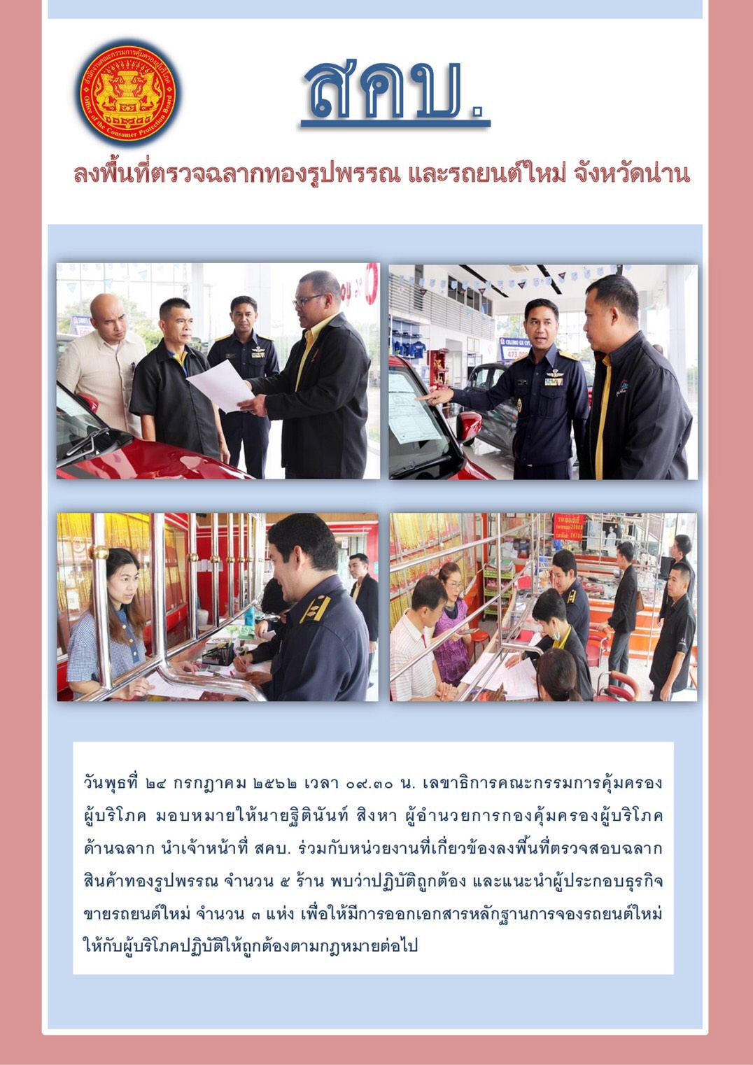 สคบ.ลงพื้นที่ตรวจฉลากทองรูปพรรณ และรถยนต์ใหม่ จังหวัดน่าน
