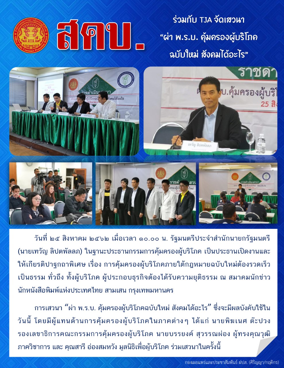 สคบ.ร่วมกับTJAจัดเสวนา "ผ่า พ.ร.บ.คุ้มครองผู้บริโภค ฉบับใหม่ สังคมได้อะไร"