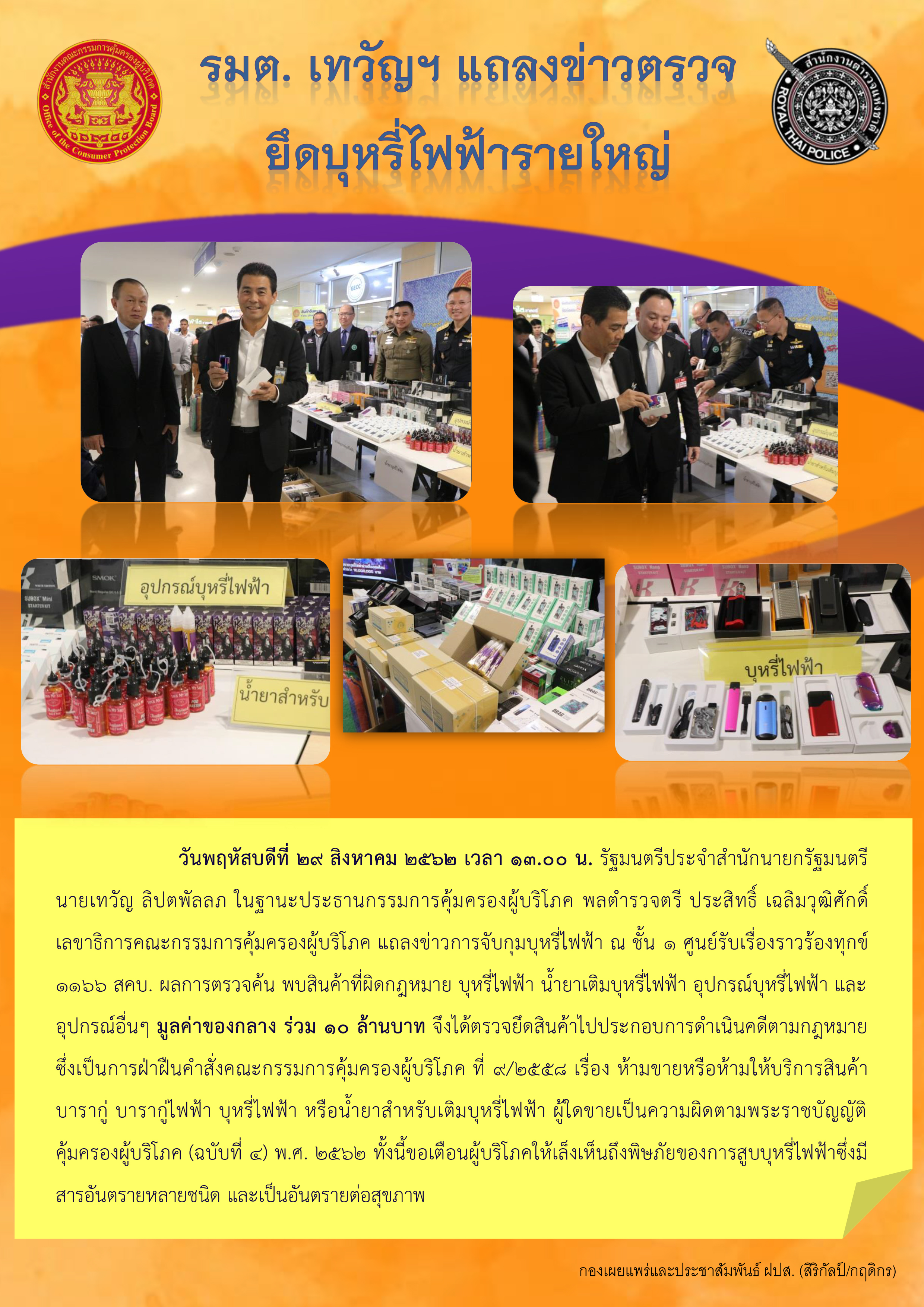 รมต.เทวัญฯ แถลงข่าวตรวจยึดบุหรีไฟฟ้ารายใหญ่