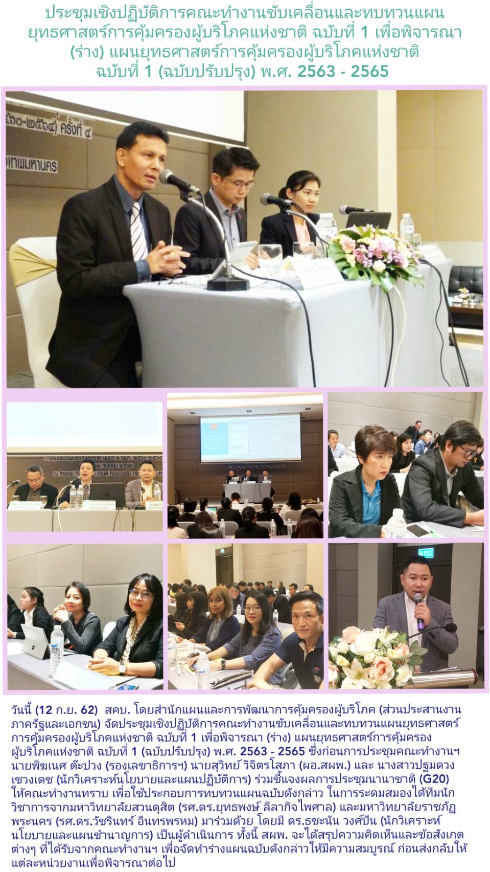 ประชุมเชิงปฏิบัติการคณะทำงานขับเคลื่อนและทบทวนแผนยุทธศาสตร์การคุ้มครองผู้บริโภคแห่งชาติ ฉบับที่ 1 เพื่อพิจารณา (ร่าง) แผนยุทธศาสตร์การคุ้มครองผู้บริโภคแห่งชาติ ฉบับที่ 1 (ฉบับปรับปรุง) พ.ศ. 2563 - 2565