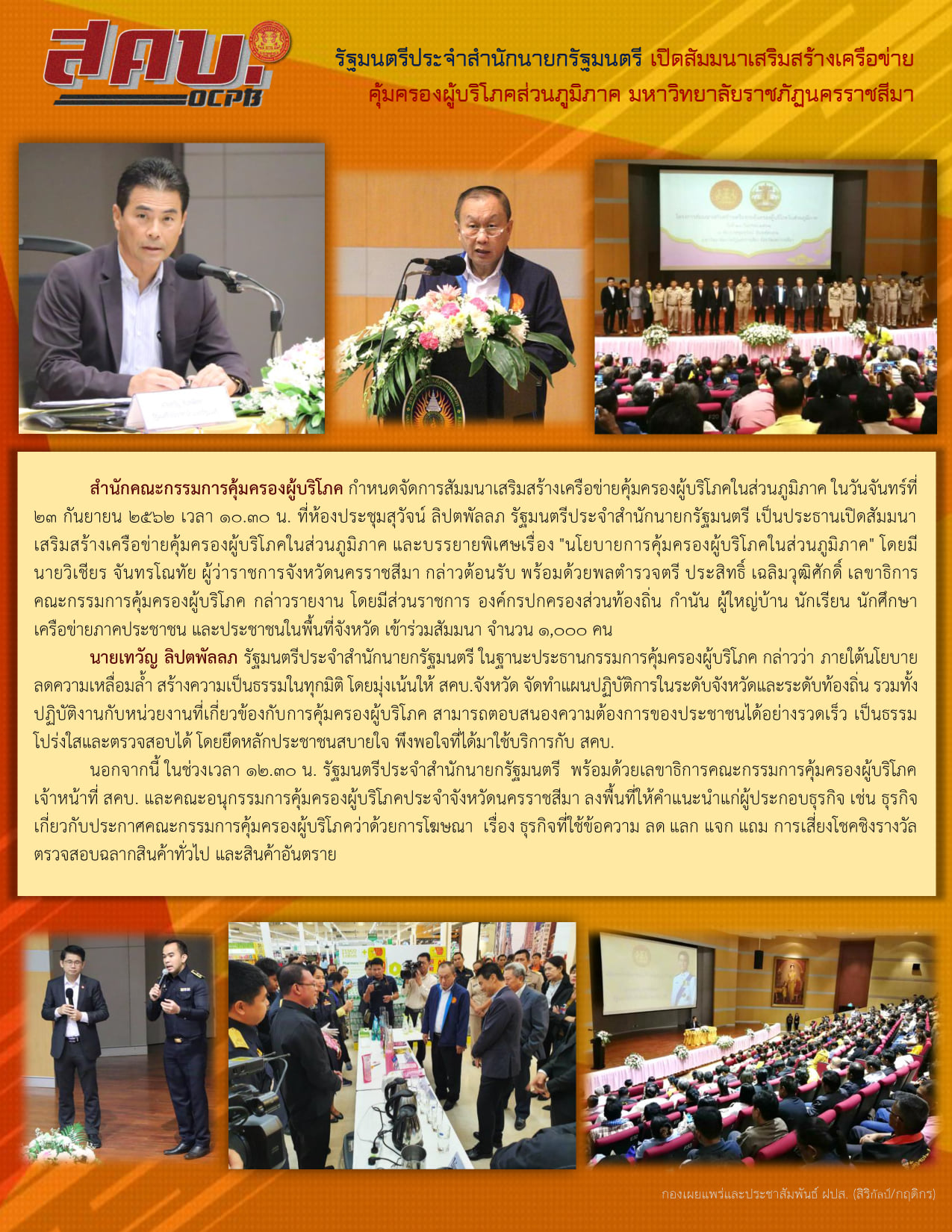 รัฐมนตรีประจำสำนักนายกรัฐมนตรี เปิดสัมมนาเสริมสร้างเครือข่ายคุ้มครองผู้บริโภคในส่วนภูมิภาค มหาวิทยาลัยราชภัฏนครราชสีมา