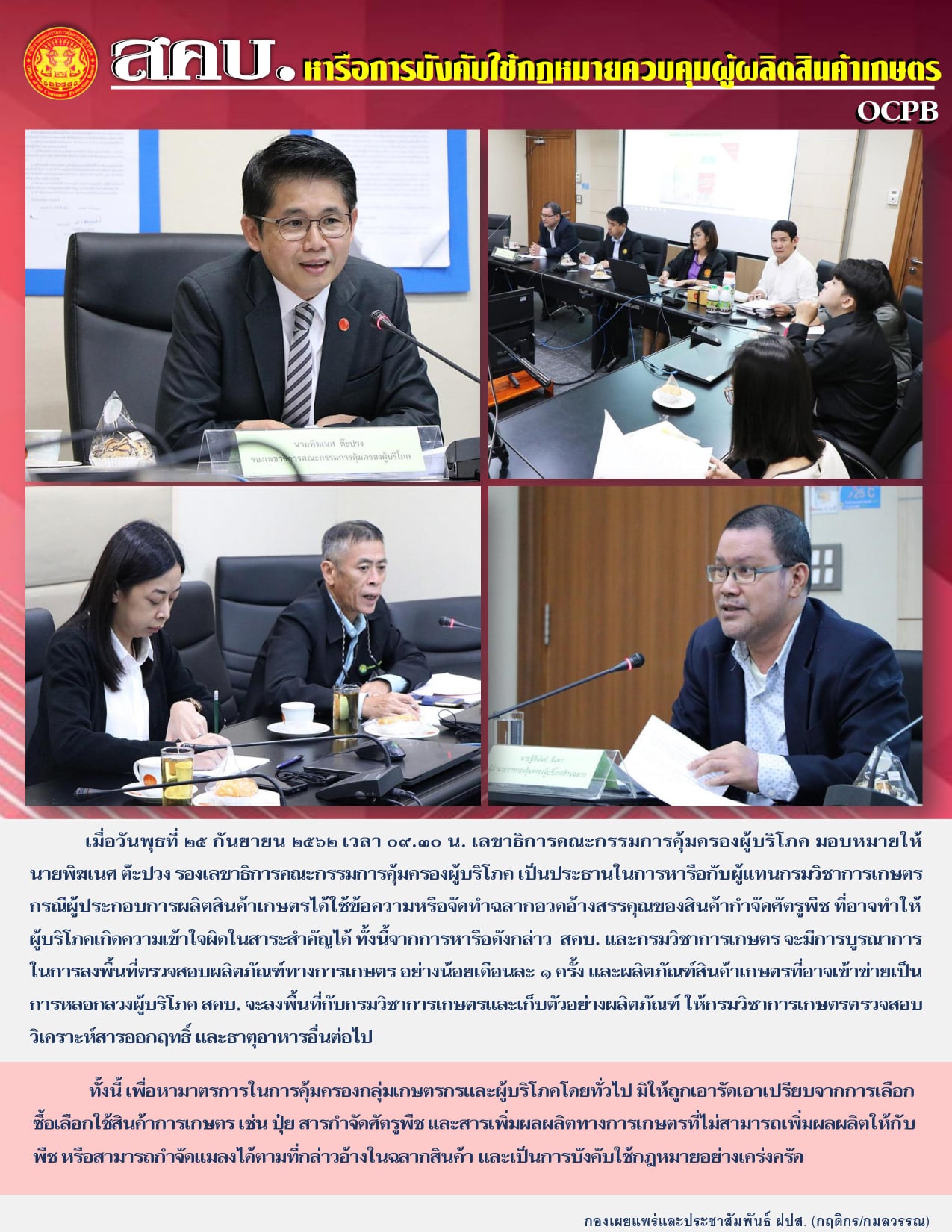 สคบ.หารือการบังคับใช้กฎหมายควบคุมผู้ผลิตสินค้าเกษตร