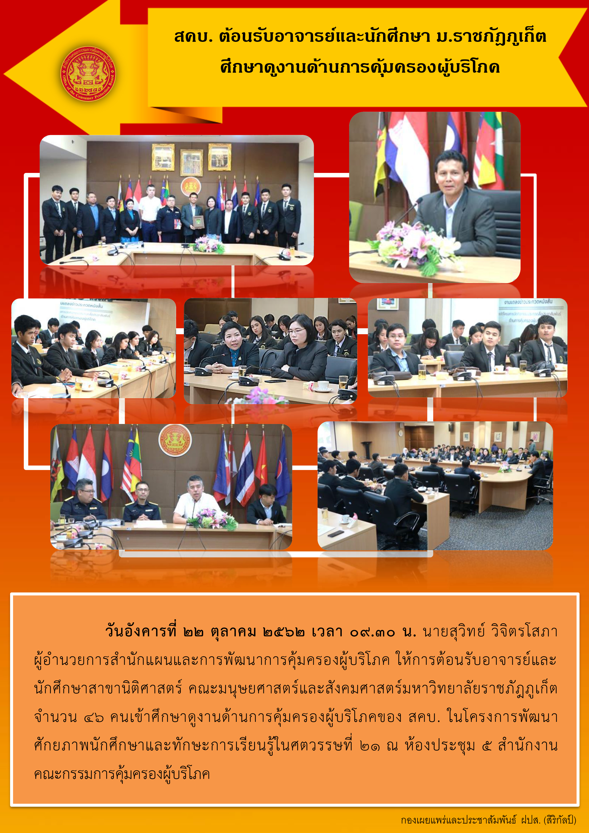 สคบ. ต้อนรับอาจารย์และนักศึกษา ม.ราชภัฎภูเก็ต ศึกษาดูงานด้านการคุ้มครองผู้บริโภค