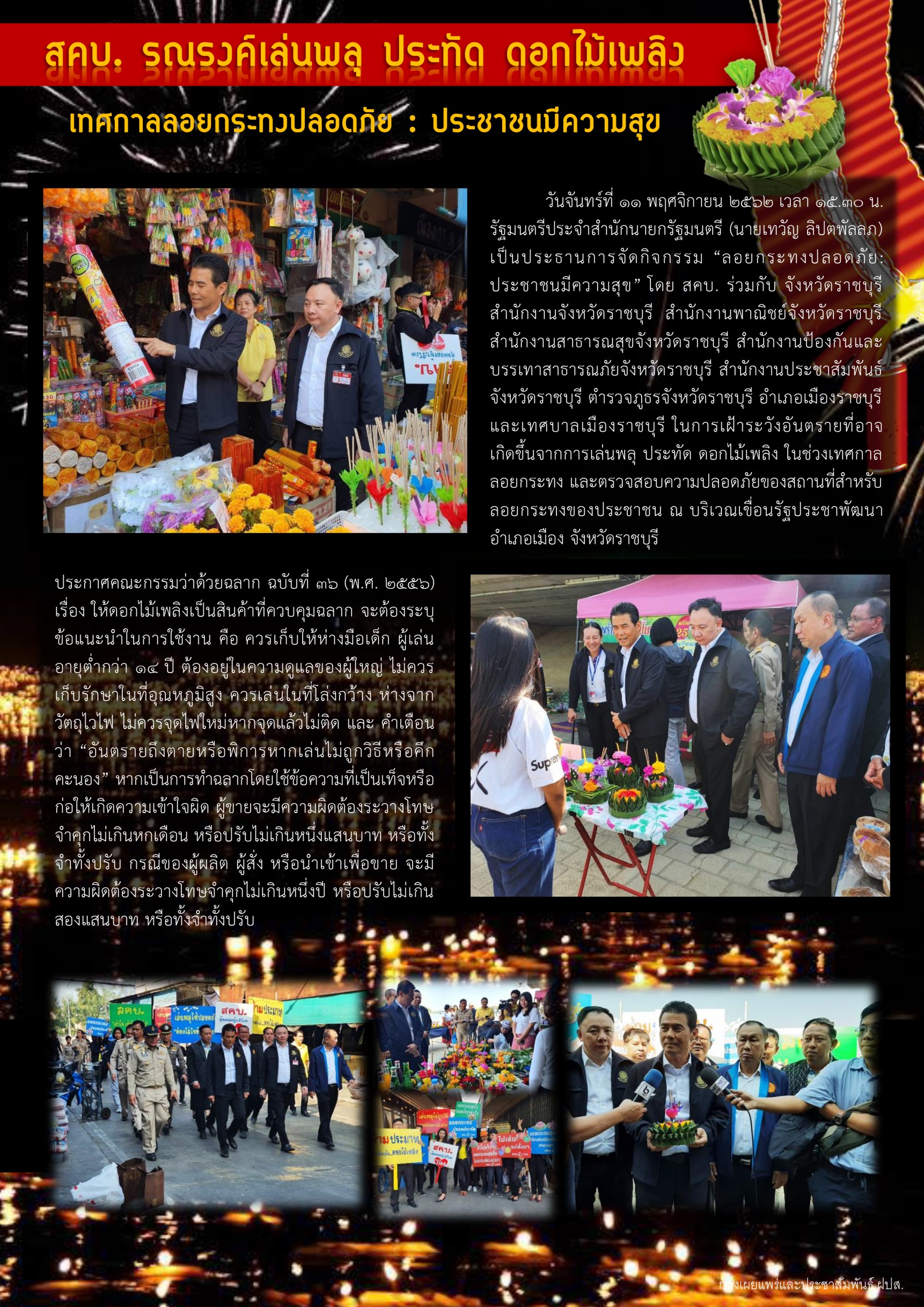 สคบ.รณรงค์เล่นพลุ ประทัด ดอกไม้เพลิง เทศกาลลอยกระทงปลอดภัย : ประชาชนมีความสุข