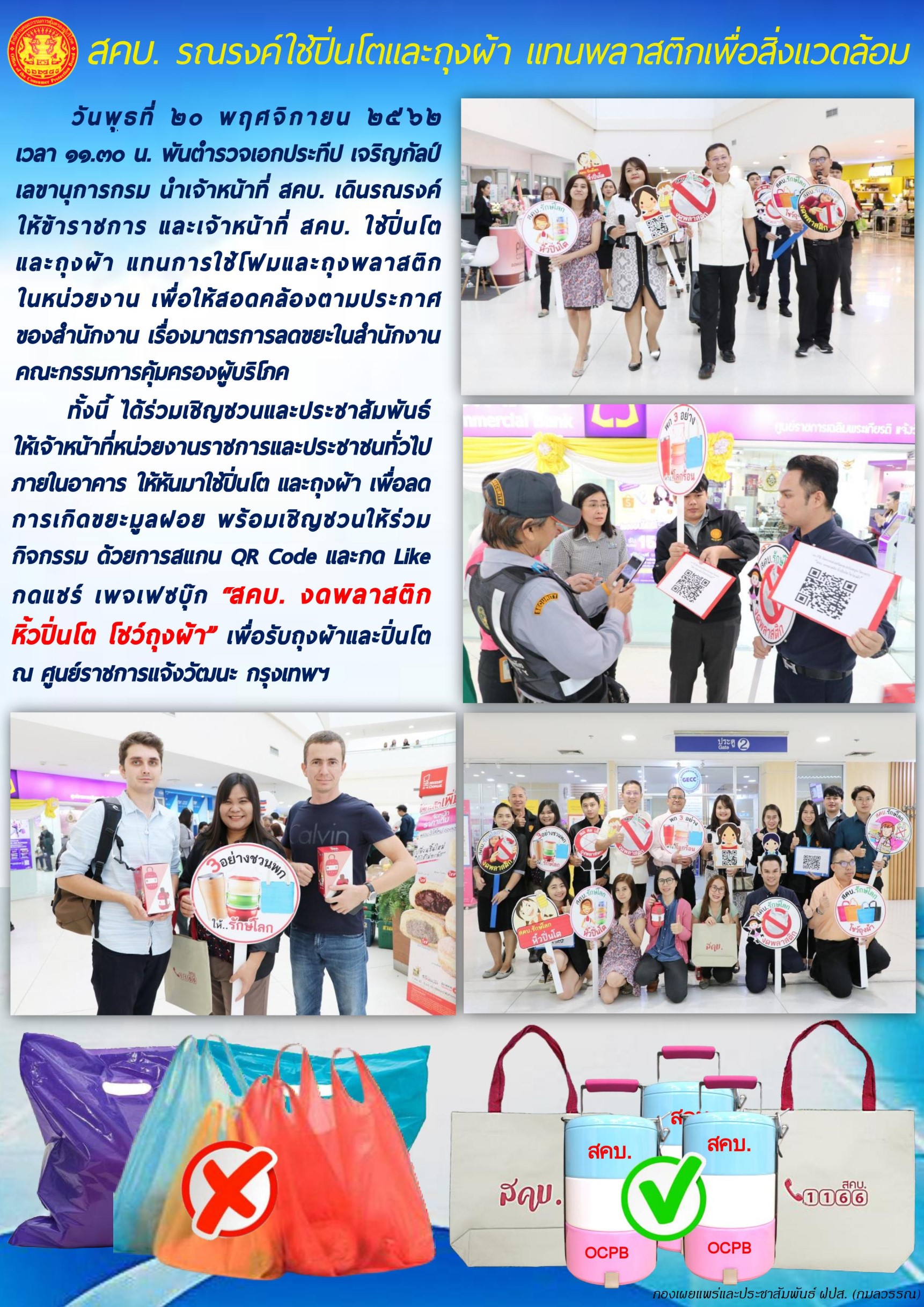 สคบ.รณรงค์ใช้ปิ่นโตและถุงผ้า แทนพลาสติกเพื่อสิ่งแวดล้อม