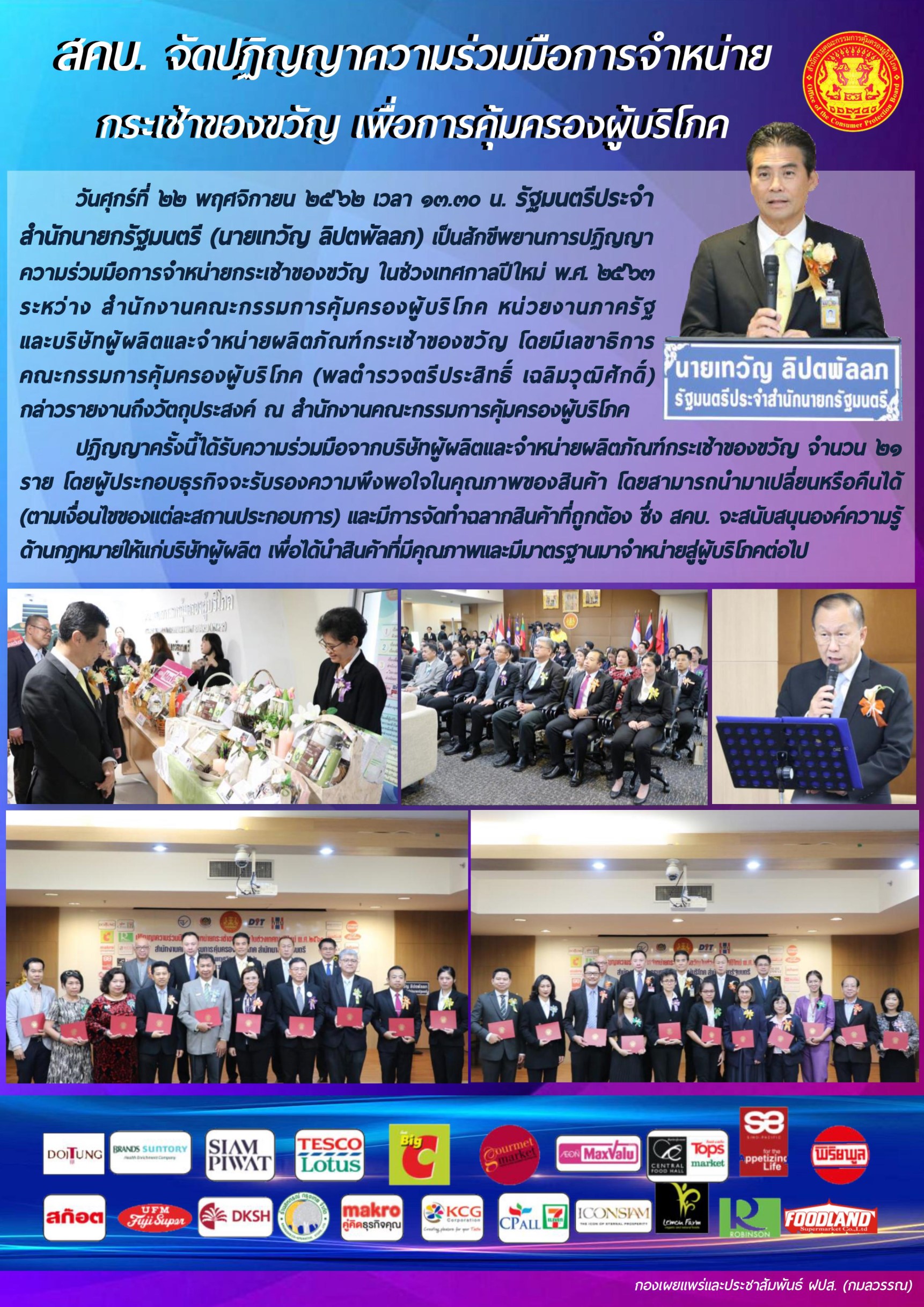 สคบ.จัดปฏิญญาความร่วมมือการจำหน่ายกระเช้าของขวัญ เพื่อการคุ้มครองผู้บริโภค